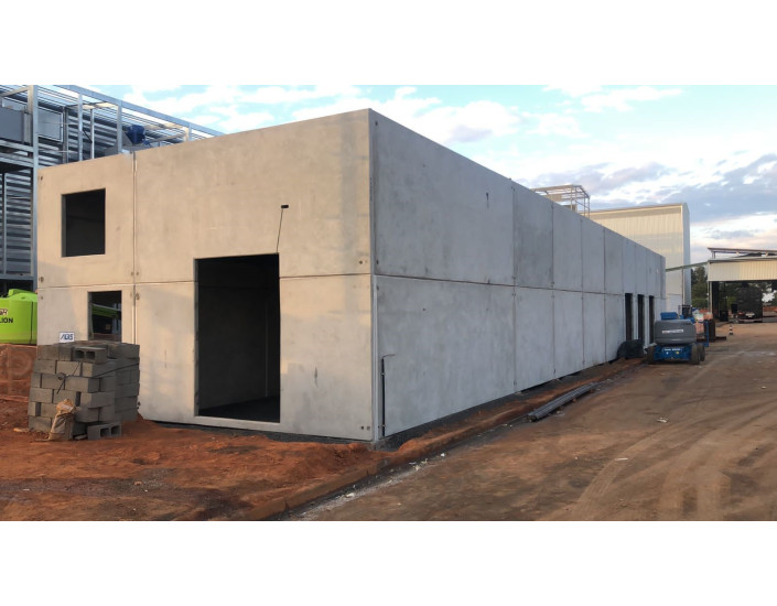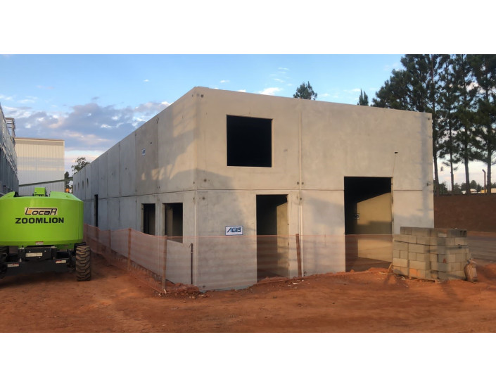 Fabricação e montagem de pilares e paredes da lateral do armazém.