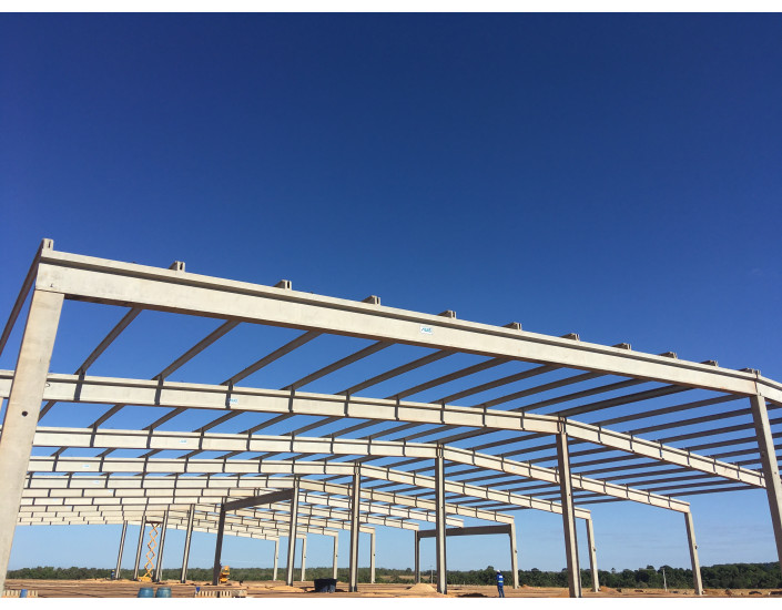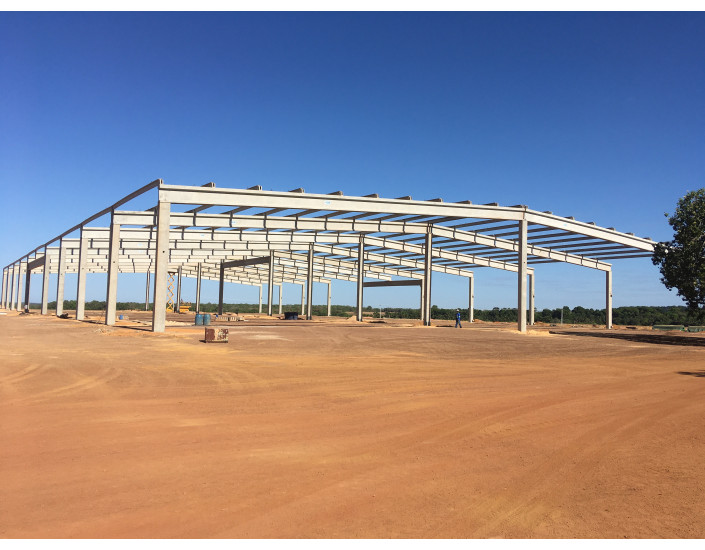 Galpão para abrigar máquinas construído no interior do Tocantins. Para este projeto devido a distância e tempo de transporte, a permanência de guindaste na obra para realizar a descarga das peças ficou economicamente inviável, por isso foi desenvolvido um pórtico para descarga das peças.