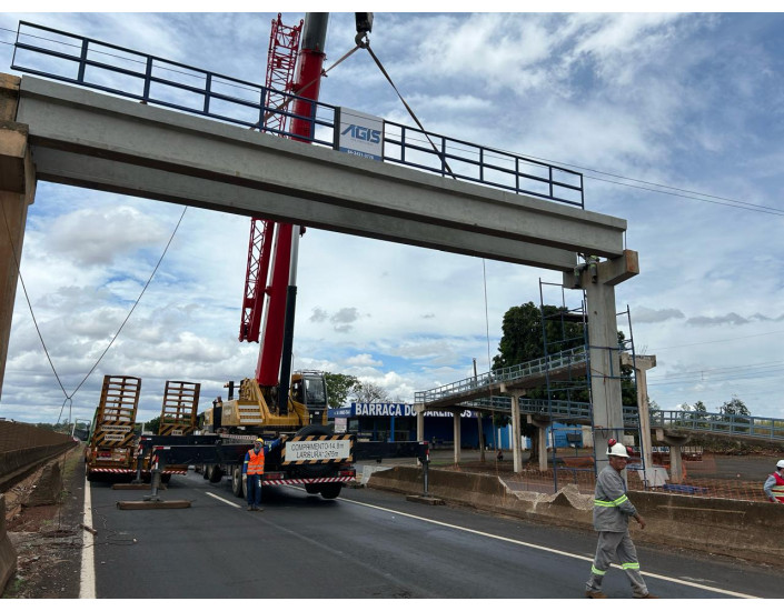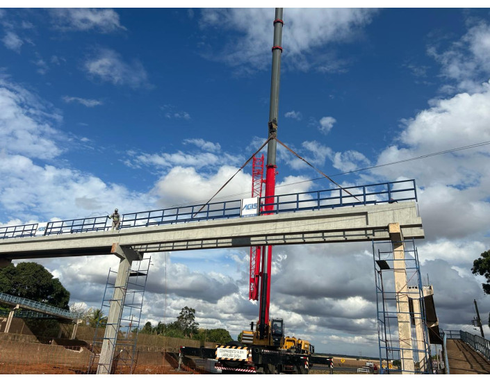 Execução de passarela em concreto com pilares, vigas, pré-lajes e barreiras new jersey.